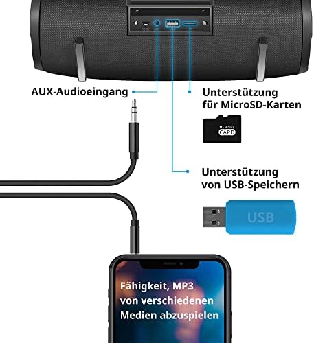 Fiche Technique Defender G22 Enceinte Bluetooth avec radio FM et lecteur MP3, haut-parleur portable, boîte de musique Bluetooth avec stéréo sans fil, 6 heures d’autonomie, 20 W, noir