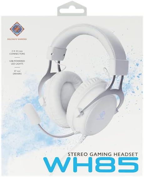 Avis sur DELTACO Casque Gamer PC PS4 Switch Xbox One Adaptateur Inclus, Circum-Aural Drivers Ø57mm Stéréo Réduction Bruit, Jack 2X 3,5mm (Son, Micro) Molette Volume, LED Orange Via USB, Garantie 5 Ans, Blanc