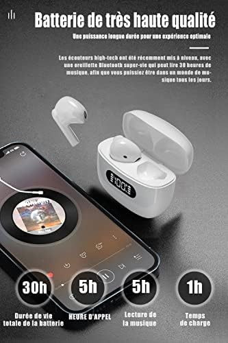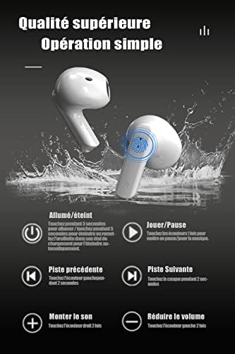 Le Prix Ecouteurs Bluetooth sans Fil, Le Ecouteur sans Fil IPX7 Étanches, Ecouteur Bluetooth 5.2, Contrôle Tactile, Microphones Intégrés, 30 Heures Durée de Lecture, Pour iOS et Android Telephone