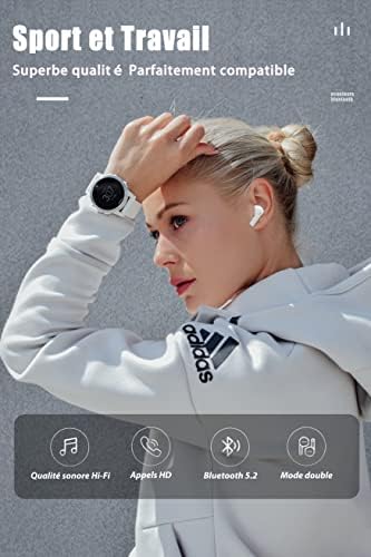 Fiche Technique Ecouteurs Bluetooth sans Fil, Le Ecouteur sans Fil IPX7 Étanches, Ecouteur Bluetooth 5.2, Contrôle Tactile, Microphones Intégrés, 30 Heures Durée de Lecture, Pour iOS et Android Telephone