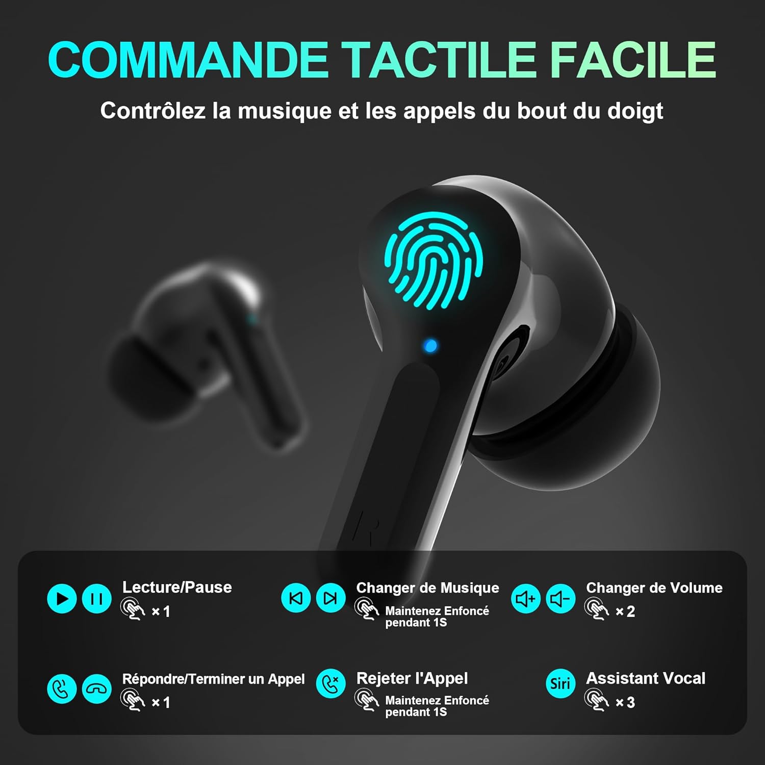 Contrôle Tactile Sensible & Compatibilité Universelle : Touchez les écouteurs pour appeler, mettre en pause, changer de chanson, ajuster le volume ou activer Siri. Grâce à leur grande compatibilité, ils se connectent à n’importe quel appareil Bluetooth comme les téléphones, tablettes, PC, TVs. Si insatisfait, remboursement inconditionnel en 30 jours.