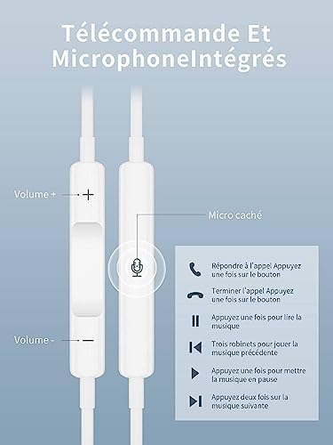 Fiche Technique Écouteurs/Écouteur Insonorisé Réduction du Bruit Compatible avec iPhone, Casque Filaire avec Micro et Contrôle du Volume Compatible avec iPhone 14/14 Pro/13/12/12Pro/SE/11/11Pro Max/XS Max/X/XR/8/7