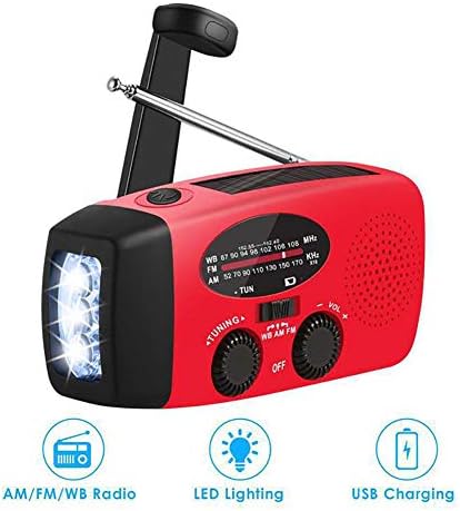 【3 lampes de poche LED】 Notre radio à manivelle a une taille compacte, portable dans le sac à dos ou la retire à portée de main. Avec une lampe de poche 3 LED lumineuse construite dans une batterie rechargeable de 2000 mAh, ce qui donne un faisceau assez large pour s’éclairer dans toute l’obscurité.