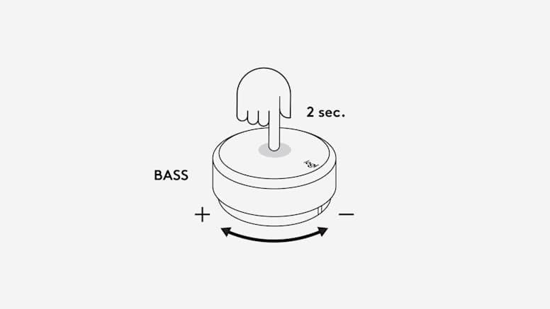 Appuyez pendant 2 secondes pour passer en mode basses ou en sortir. Faites tourner et réglez le volume des basses. Un son vous préviendra lorsque vous atteindrez le volume de basses MAX/min. CONSEIL: Les haut-parleurs Logi Z407 sortent automatiquement du mode basses au bout de 15 secondes.