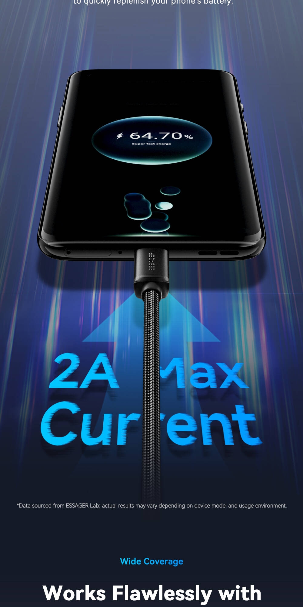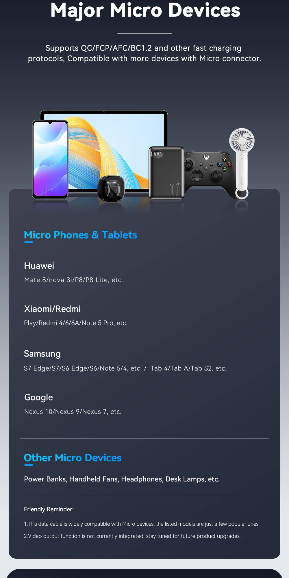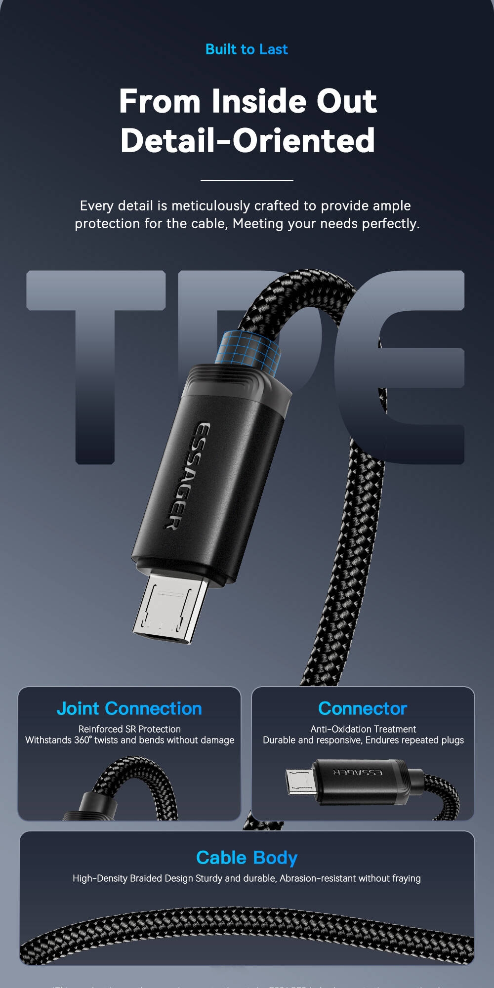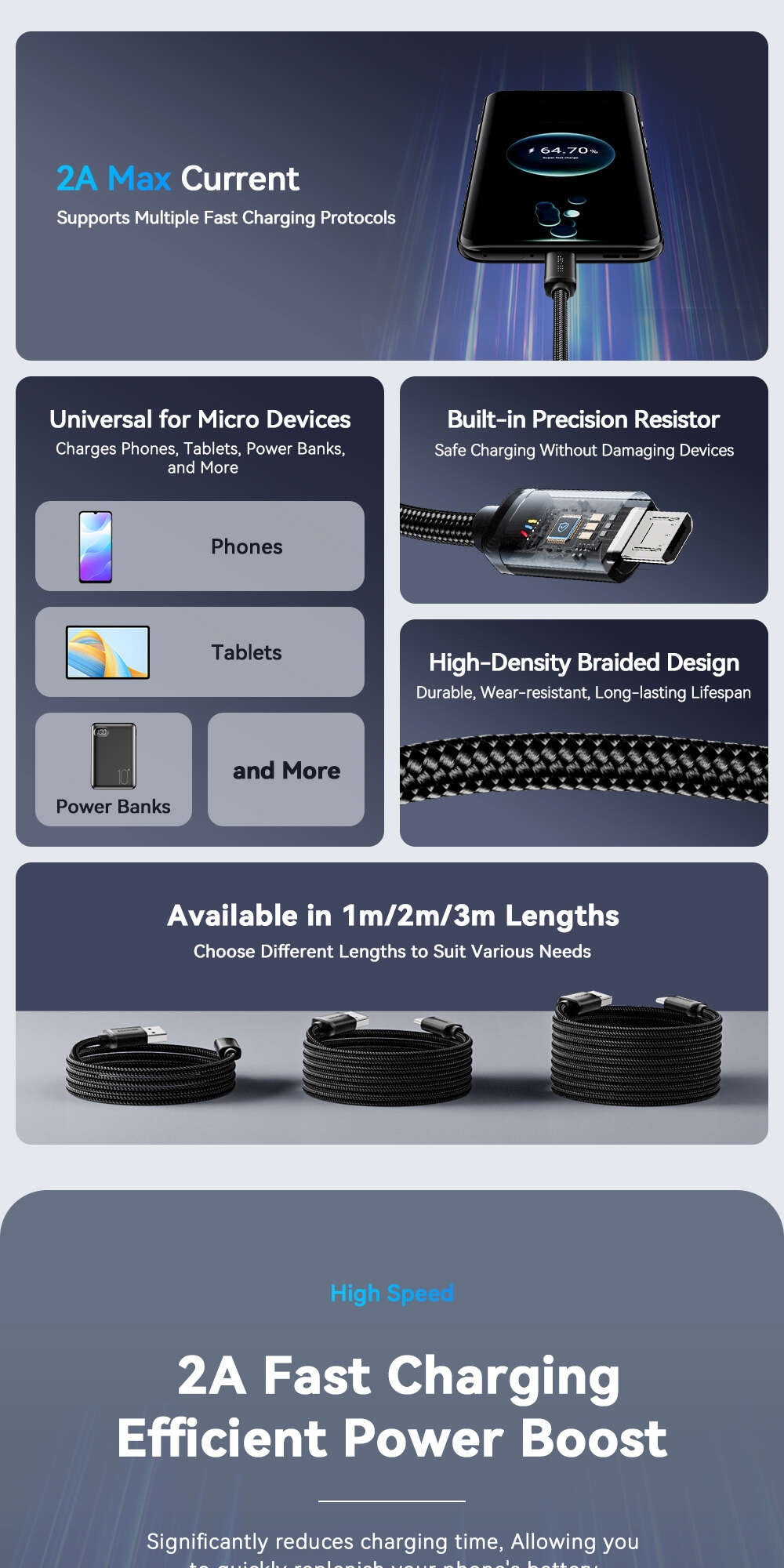 Fiche Technique ESSAGER câble Micro USB 2A câble USB de charge rapide pour Xiaomi Realme Redmi Samsung Huawei téléphone portable USB chargeur de données