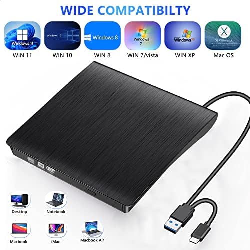 Le Prix FCRB Lecteur CD/DVD Externe USB 3.0 et Type C Portable DVD-RW Graveur CD, Plug and Play pour PC, Laptop, Desktops, Windows 10/8 / 7 / XP/Vista/Linux/Mac OS