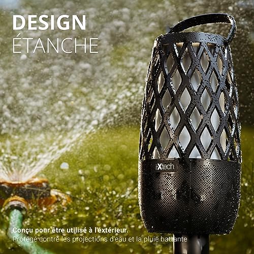 Haut-parleur Bluetooth LED IXTECH doté de trois modes d’éclairage uniques, dont flamme dansante, bougies et solide — pour vous aider à créer l’atmosphère intérieure ou extérieure la plus excitante, relaxante ou réparatrice.