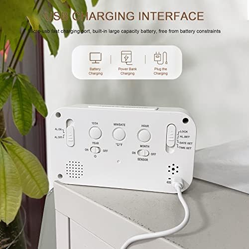 Le Prix Jsdoin Réveil Numérique, Alarm Réveil LED avec Température, Fonction Snooze, 12/24H Conversión, du Calendrier, pour Chambre à Coucher, Bureau, Cuisine(Rechargeable)