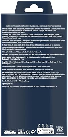 Fiche Technique King C. Gillette Kit tondeuse à barbe pour homme, tondeuse sans fil + lames aiguisées de longue durée et 3 régulateurs de longueur interchangeables pour le soin de la barbe