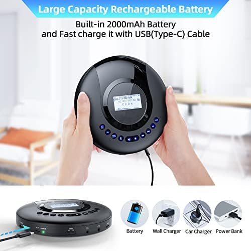 Le Prix Lecteur CD Portable, Arafuna Lecteur CD Bluetooth pour Voiture et Enfants, Lecteur CD Discman Rechargeable 2000 mAh avec écran LCD, Protection Antichoc baladeur CD FM Petit avec écouteurs