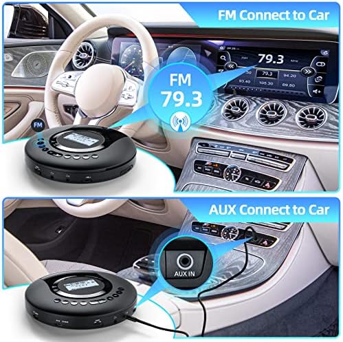 【Batterie rechargeable】 Notre lecteur CD de voiture est équipé d’une batterie haute capacité améliorée de 2000 mAh. Il peut jouer jusqu’à 19 heures (dans la situation : sans utiliser la fonction Bluetooth). Un lecteur CD Walkman est également disponible pour la voiture. Il dispose d’une prise AUX et d’un câble. Vous pouvez vous connecter au haut-parleur de la voiture avec un câble AUX. Profitez de la musique pendant votre voyage.