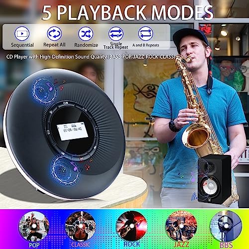 Lecteur CD multifonction: lecteur CD dispose de 4 modes de lecture, également mode de répétition A-B, personnalisez la lecture répétée pour aider votre enfant à améliorer l’apprentissage et 5 modes sonores EQ (BASS-POP-JAZZ-ROCK-CLASS). lecteur CD portable dispose d’un grand écran LCD rétroéclairé pour une visualisation facile la nuit et les boutons sont plus faciles à utiliser pour les personnes âgées. Un petit lecteur CD pour les personnes âgées, les adultes et les enfants de plus de 3 ans.