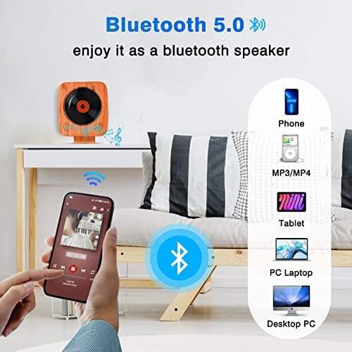 【Advanced Bluetooth Connection】Le lecteur CD kpop est doté d’une plus grande portée de signal Bluetooth 5.0. Vous pouvez vous connecter avec un smartphone, un MP3, un ordinateur portable. Ce lecteur CD mural Bluetooth avec un design en bois peut efficacement empêcher la résonance et la perte de qualité sonore, de sorte que plus de détails de la musique peuvent être garantis.