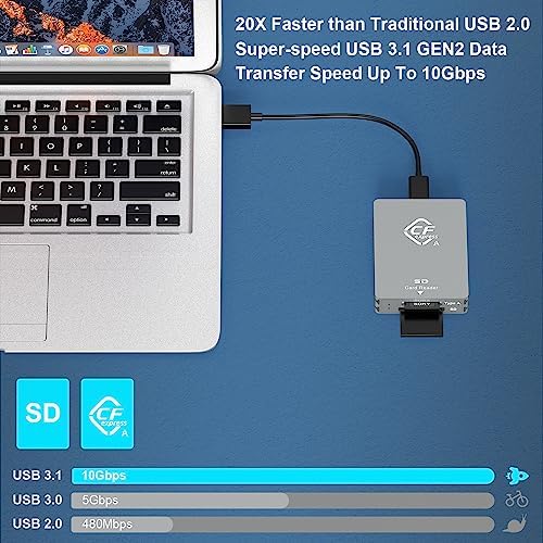 【Transfert de données ultra rapide 10 Gbit/s】USB C CFexpress Type A card reader en La technologie USB 3.2 Gen 2 prend en charge une vitesse de transfert maximale jusqu’à 10 Gbit/s (1250 Mo/s), prend en charge la carte mémoire CFexpress pour lire et écrire des photos haute résolution, des vidéos Full HD à partir de votre carte CFexpress rapidement. Rétrocompatible USB 3.1 Gen 1 et USB 3.0.