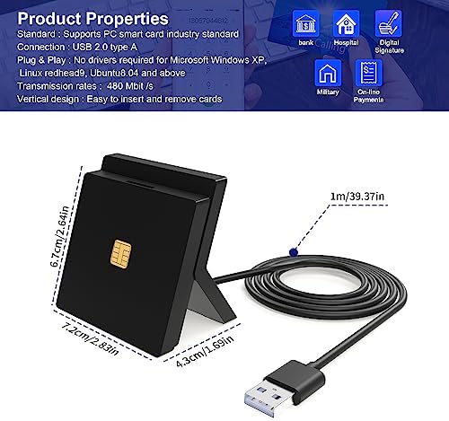 Le Prix Lecteur de Carte d’identité Belge et Lecteur de Carte SIM – Lecteur de Carte à Puce – Aucun Pilote requis Connexion USB – Compatible avec Windows/Vista