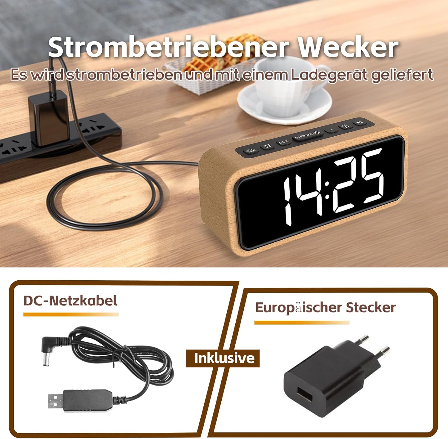 Wooden Alarm Clock with LED Display: Made of high quality beech wood, this digital alarm clock (16.5 x 5 x 7 cm) combines natural elegance with modern functionality. The extra large digital display with bold numbers ensures effortless reading from any angle.