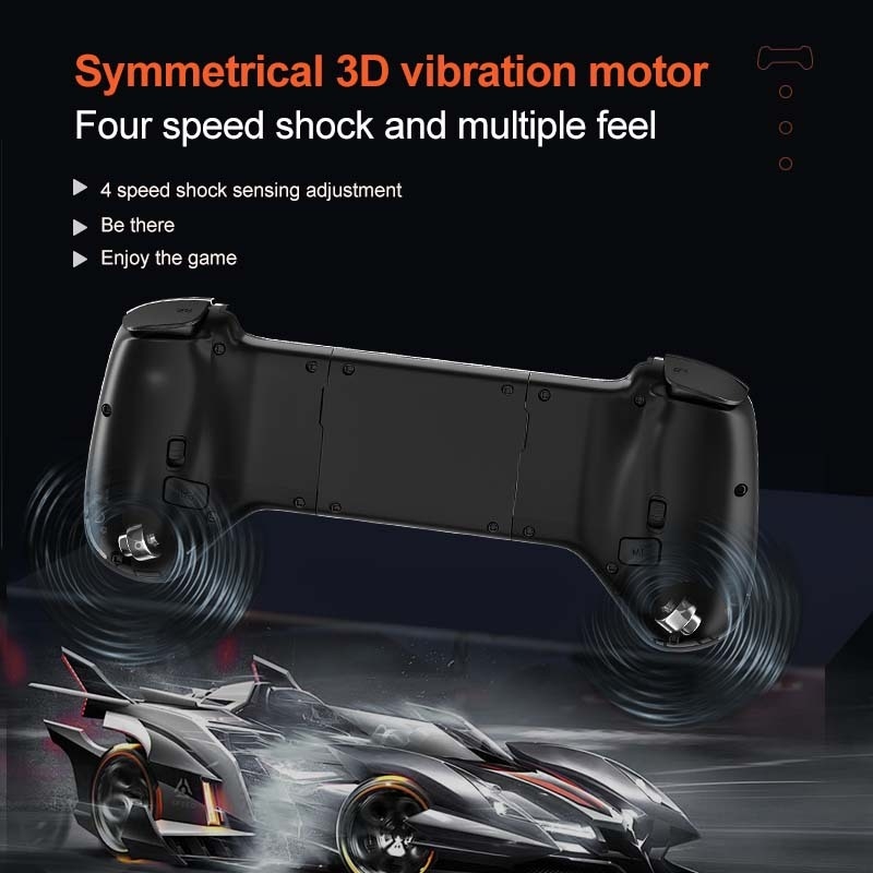 Contrôleur de jeu d’étirement de téléphone portable Bluetooth-Compatible5.3 Turbo/bouton arrière/contrôleur de manette de jeu sans fil de vibration fonction macro pour iPhone 15/14/13/iPad/iOS/tablette/PC/commutateur