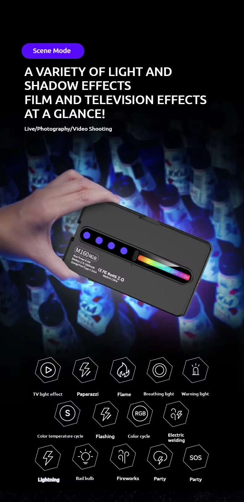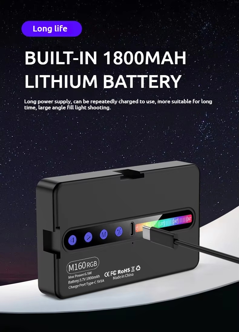 Fiche Technique Mini Lampe vidéo Selfie Light LED Lumière vidéo LED pour appareil photo Bicolore, lampe de remplissage, éclairage de photographie portable, 6500K, appareil photo, Batterie intégrée Longue durée de vie Mini lampe de poche portable carrée M160