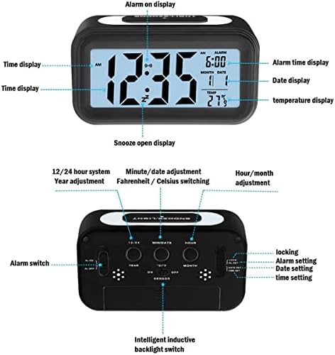 Détection intelligente de la température ambiante : ce réveil numérique dispose d’un système de détection de température intelligent intégré qui peut être très sensible aux changements de température environnementale à chaque période et affiché avec précision sur l’écran LCD, vous permettant de surveiller la température intérieure en temps réel