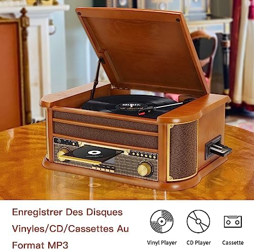 Le Prix Musitrend Platine Vinyle 3 Vitesses avec Fonction Bluetooth, Lecture USB, Radio Dab/FM, Lecteur CD/Cassette, Haut-parleurs stéréo intégrés, entrée auxiliaire/RCA, Prise Casque 3,5 mm