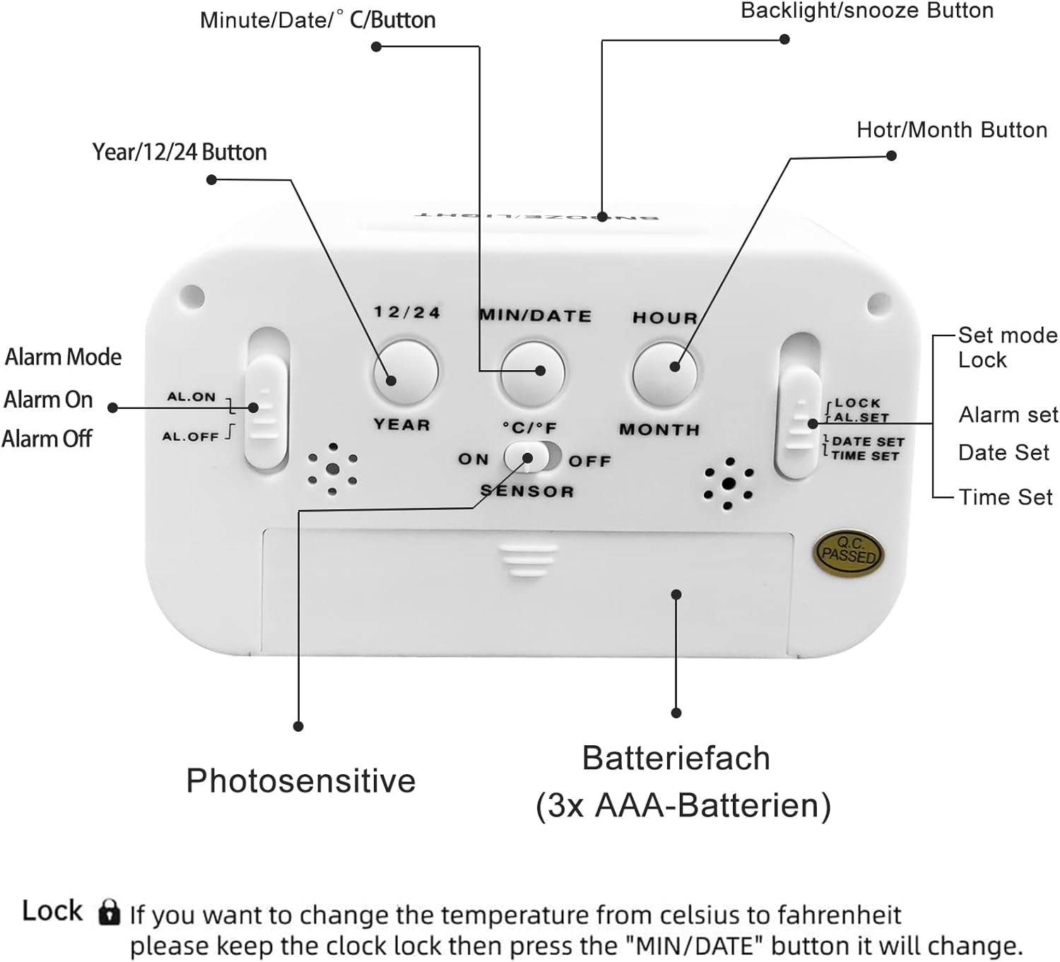 Réveil multifonctionnel facile à régler : le grand écran de ce réveil numérique affiche l’heure (12/24), la date (MM/JJ), l’affichage de la température F/°C, la température interne pour l’observation du climat intérieur. Des boutons supplémentaires avec des icônes de marqueur à l’arrière sont très faciles à configurer. Réveil avec grand écran : La taille d’écran de ce blanc