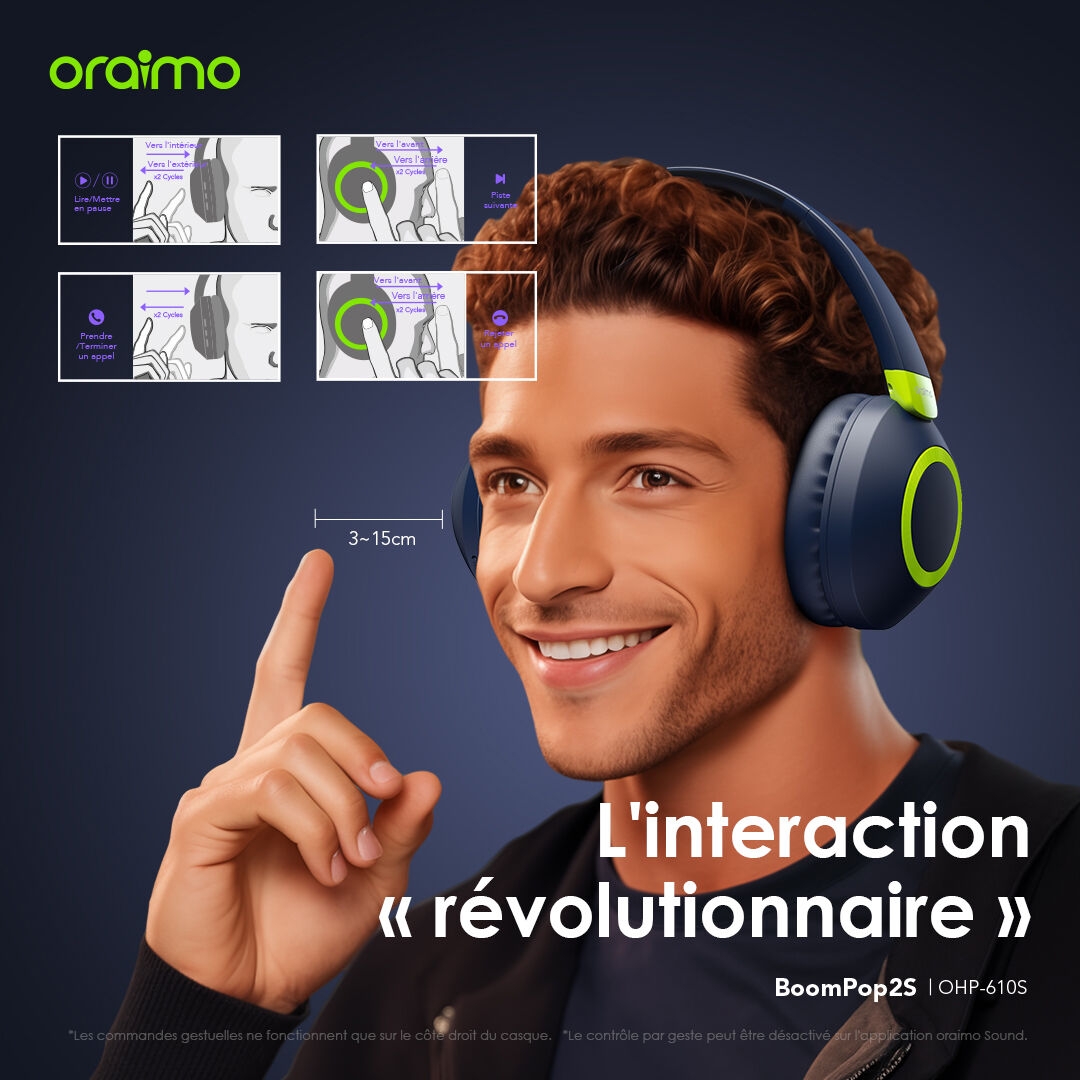 *Le contrôle par geste peut être désactivé sur l’application oraimo Sound.