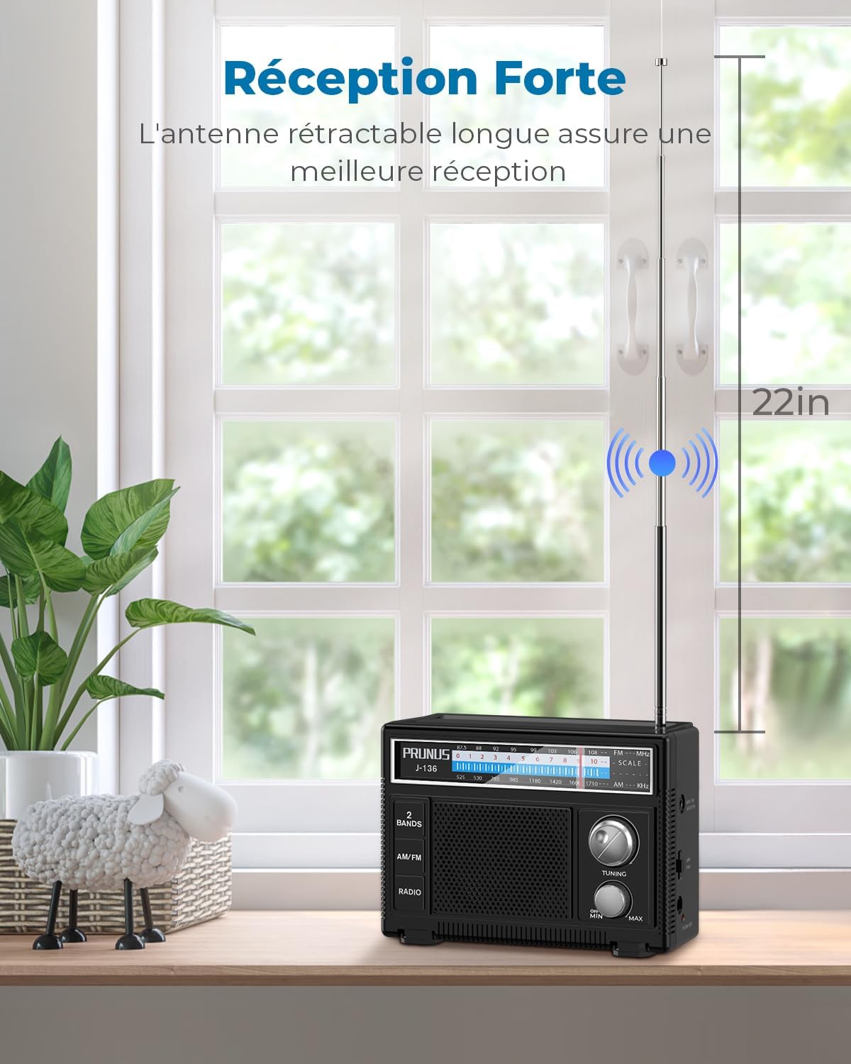 Fiche Technique Portable Radio, PRUNUS J-136 AM/FM Portable FM Radio, Excellent Reception, Transistor Radios Mains and Battery, Radio Set with AUX Jack and Headphone Jack au Maroc