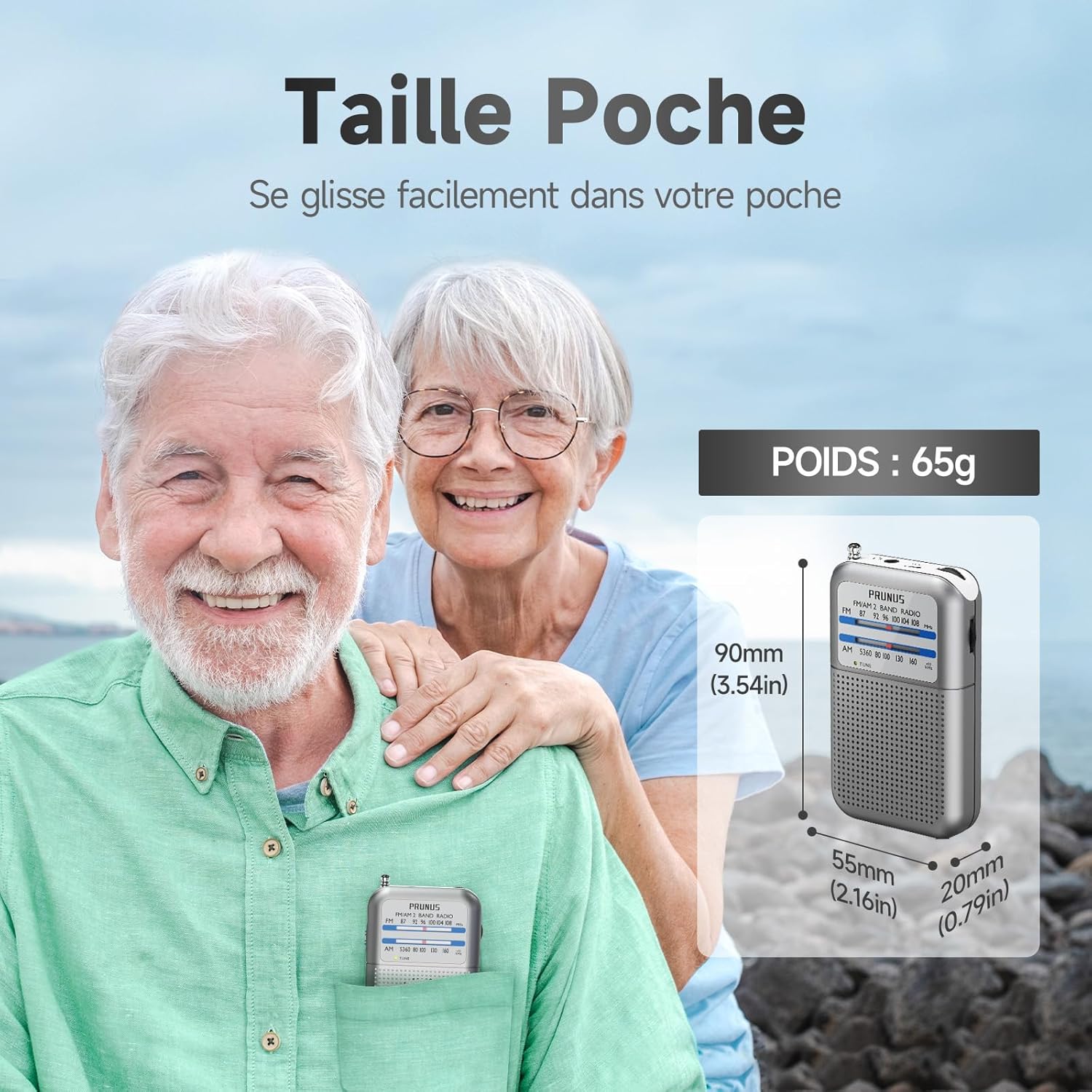 Fiche Technique PRUNUS DE-333 Mini Portable FM AM Radio with Signal Indicator, Excellent Reception, Small Pocket Radio for Walking and Camping (AAA) au Maroc