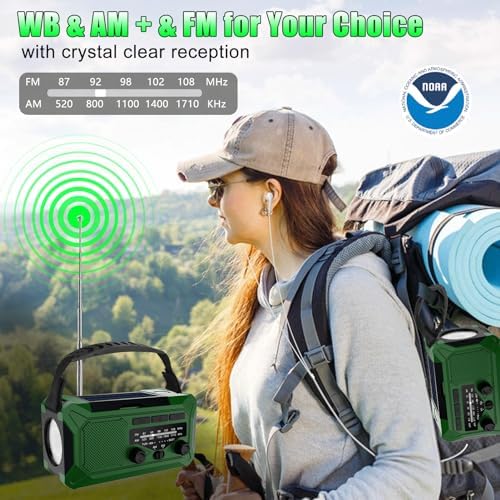 📻【Radio d’urgence à manivelle 7 en 1】 Outre les fonctions radio, cette radio à énergie solaire avec manivelle dispose également de plusieurs fonctions pratiques. Il comprend : ① 3 modes de lampe de poche ② 3 lampes de lecture à luminosité ③ Fonction d’alarme d’urgence ④ Boussole ⑤ Thermomètre environnemental. ⑥10 000 mAh de puissance mobile. La radio d’alerte météo NOAA est une aide sûre et fiable pour le camping et les sports de plein air. Si vous êtes un passionné de plein air, vous aurez certainement besoin de la radio météo d’urgence avec autant de fonctions.
