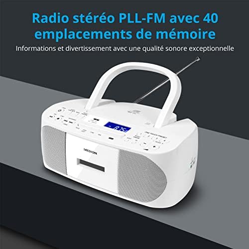 Le Prix Radio stéréo MEDION E65010 (Lecteur CD, Cassette, Connexion USB, entrée Audio AUX, Lecture MP3. Radio FM PLL, mémoire 40 Stations, Fonctionnement sur Batterie, télécommande) Blanc