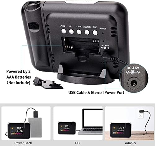 Le Prix Réveil à projecteur, Réveil numérique de chevet Réveil de mode, Réveil numérique LED avec station horaire/Affichage LCD/Température et date /Charge USB/12&24h/Noir