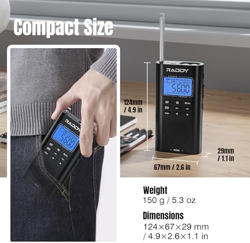 Avis sur RF886 Radio portable à ondes courtes AM/FM/SW/VHF/WB Radio numérique Connexion BT avec NOAA et alerte, radio de poche rechargeable avec antenne filaire de 9,85 pieds