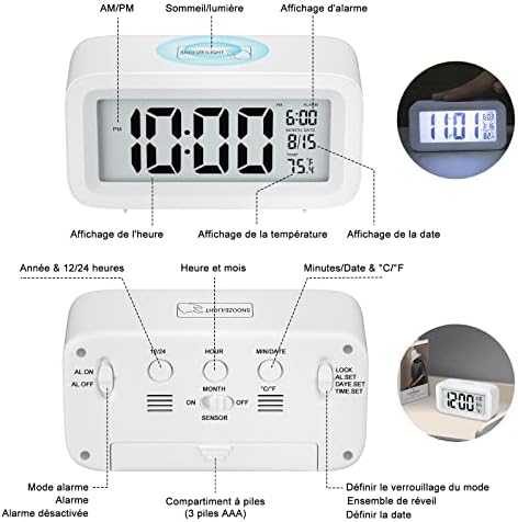⏰【Capteur de Contrôle de la Lumière & Veilleuse】Le Réveil Digital dispose d’un capteur de lumière qui peut détecter la luminosité de la pièce et régler l’affichage en conséquence. Vous pouvez voir l’heure en douceur et clairement la nuit. Le réveil dispose également d’une fonction veilleuse, ce qui est très pratique lorsque vous souhaitez vous réveiller la nuit.