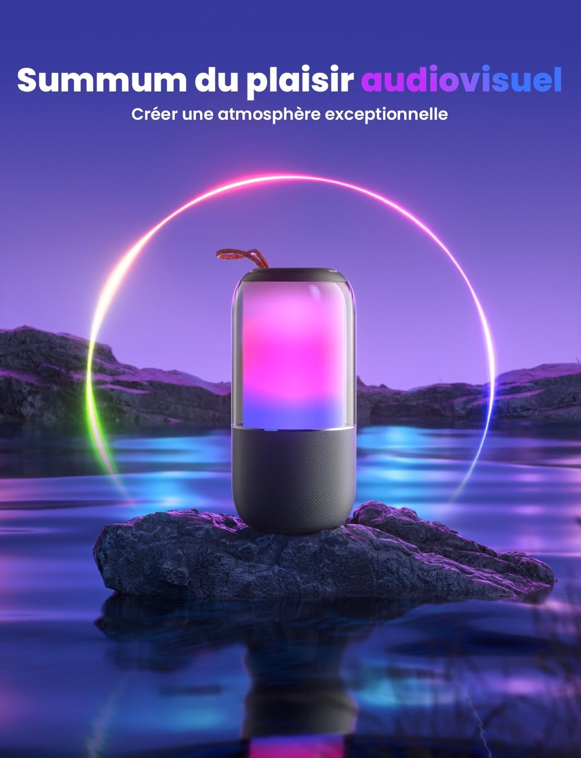 4000mAh battery and 20H battery life: Our Bluetooth speaker allows up to 20 hours of playback (volume at 50%, autonomy depends on lights, volume and genre); Designed for travel or work, without worrying about charging, even outdoors