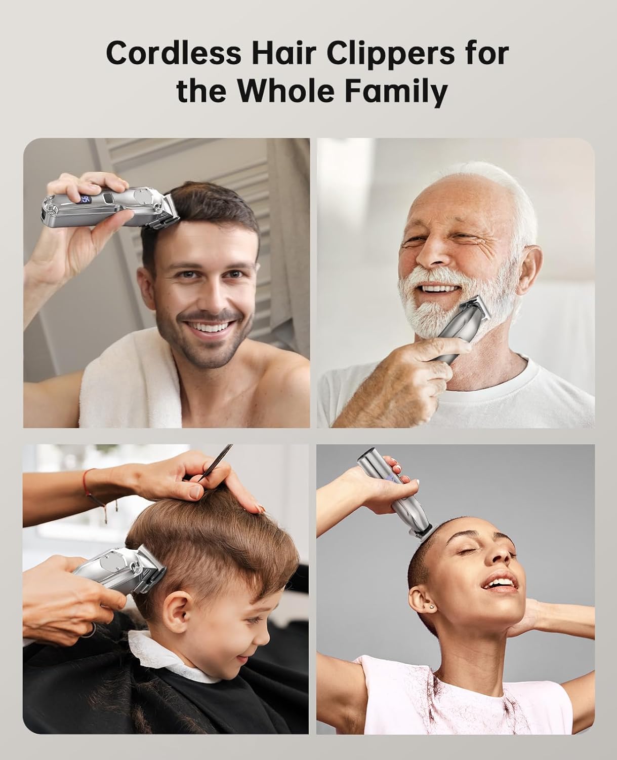 The hair clipper can be used for 240 minutes on a single charge. The trimmer can be used for 180 minutes on a single charge. Wireless design for indoor and outdoor use. Besides, with 3s child lock function to prevent automatic start, more convenient to use.