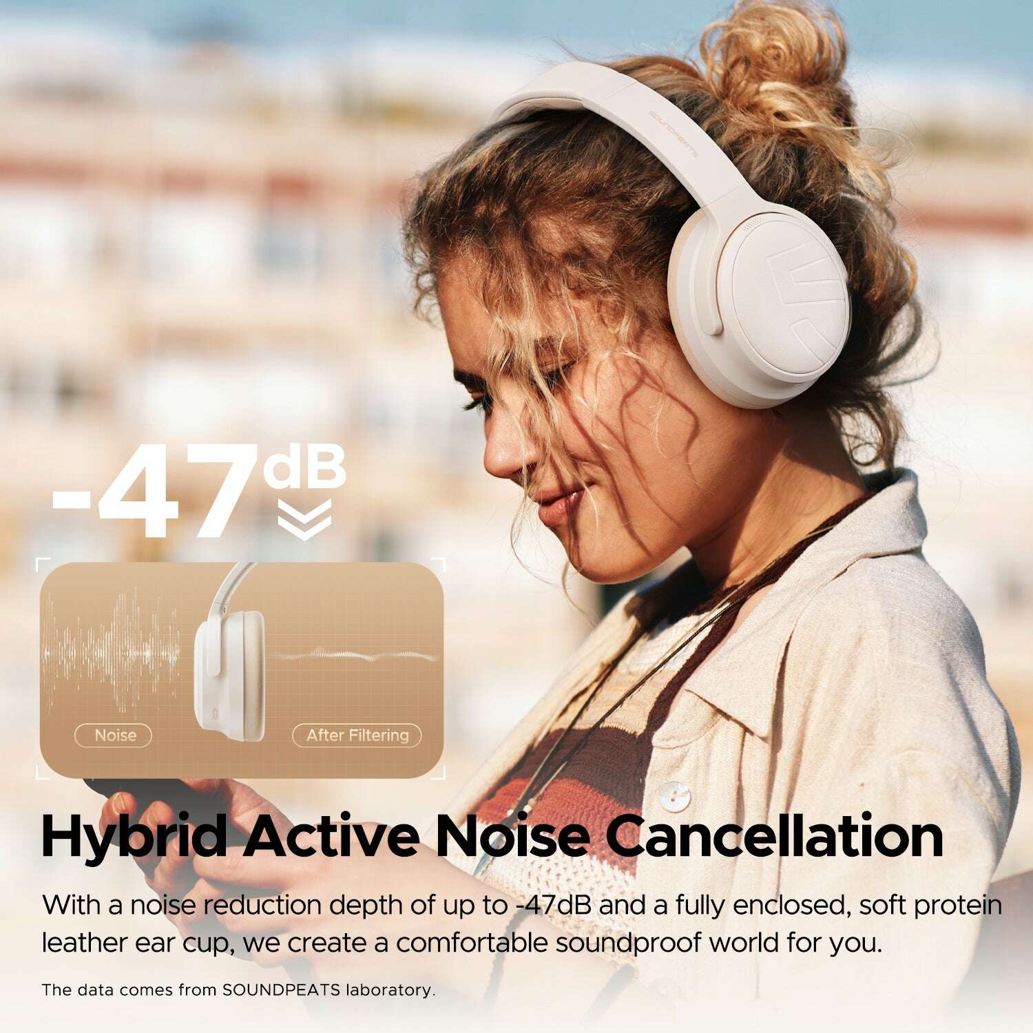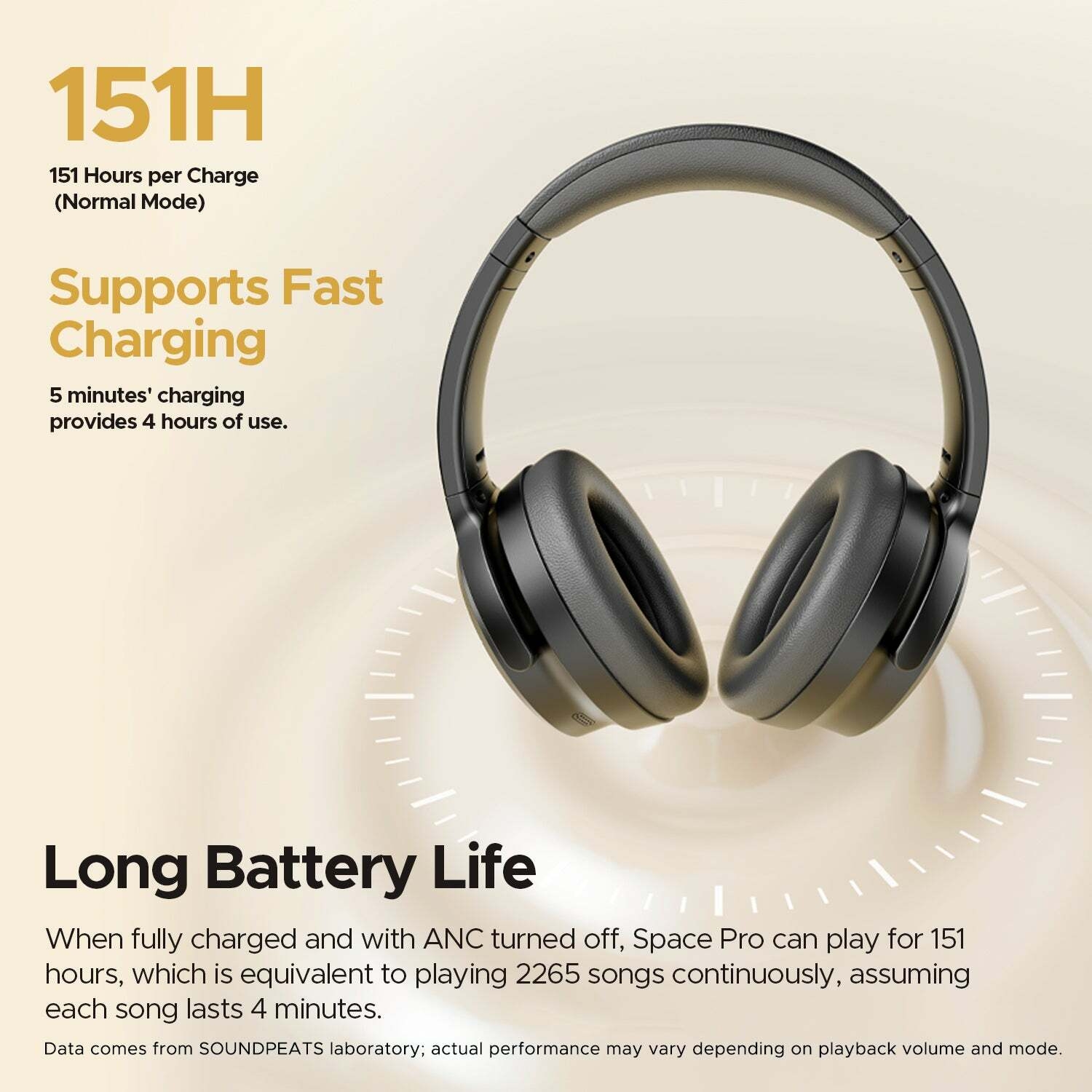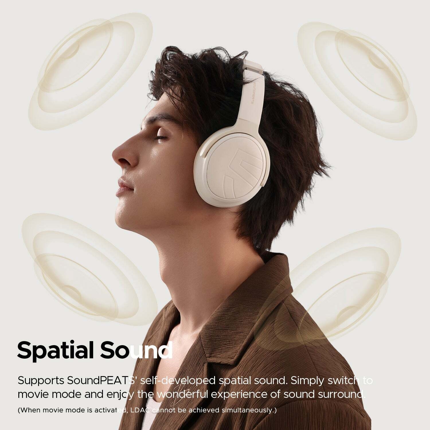 Fiche Technique Soundpeats Space Pro – Casque Bluetooth 5.4 Over-Ear avec ANC -47dB, Audio Hi-Res LDAC, Drivers Doubles Coaxiaux 40mm+10mm, 151H d’Autonomie, Réduction de Bruit IA – Beige