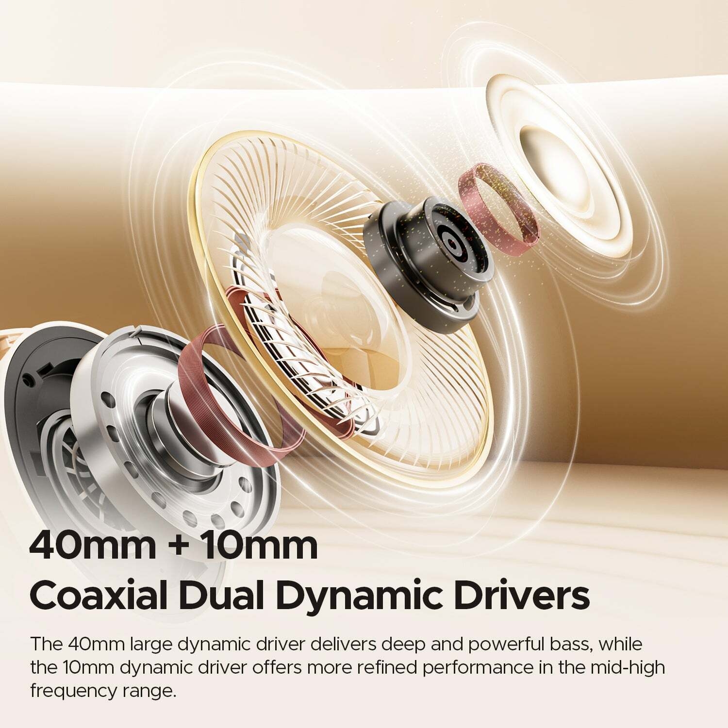 · Drivers coaxiaux doubles 40+10 mm : Son haute résolution compatible Hi-Res, LDAC et SBC pour une expérience immersive comme un concert.