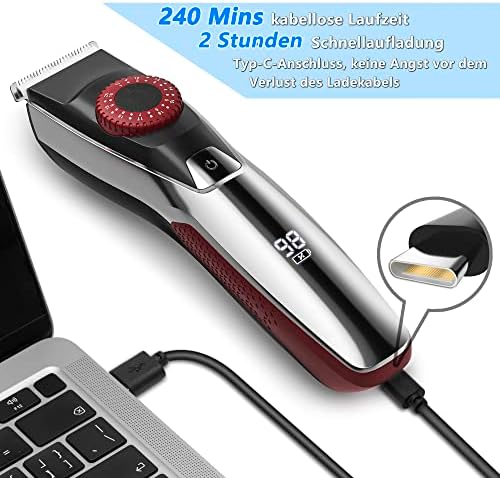 Port de charge rapide USB Type-C : équipé d’un port de charge USB de type C, cette tondeuse à cheveux et barbe peut être chargée rapidement via des ordinateurs, des prises électriques n’importe où et à tout moment. Plus de cauchemar de perte du câble de charge