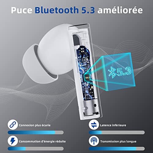 Fiche Technique Ulfsaar Ecouteurs Bluetooth sans Fil, 2023 Oreillettes Bluetooth 5.3 avec HiFi Stéréo, Casque sans Fil avec 2 Mic Réduction de Bruit, Contrôle Tactile, 42H d’Autonomie, IP7 Etanche pour iOS Android