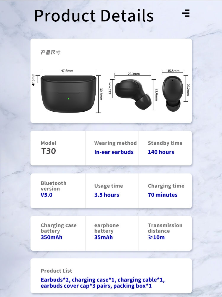 [IPX4 Waterproof] Le nano-revêtement intérieur des bouchons d’oreille et de l’étui de charge peut empêcher les éclaboussures de sueur et de pluie. Convient pour le sport et empêche les infiltrations d’eau.