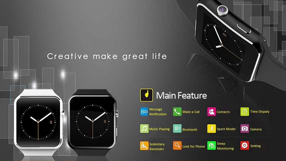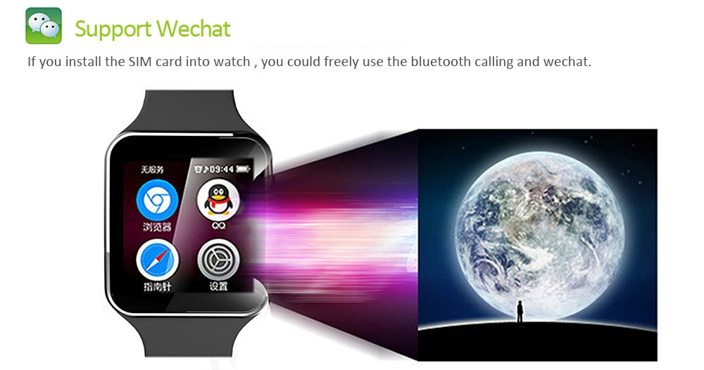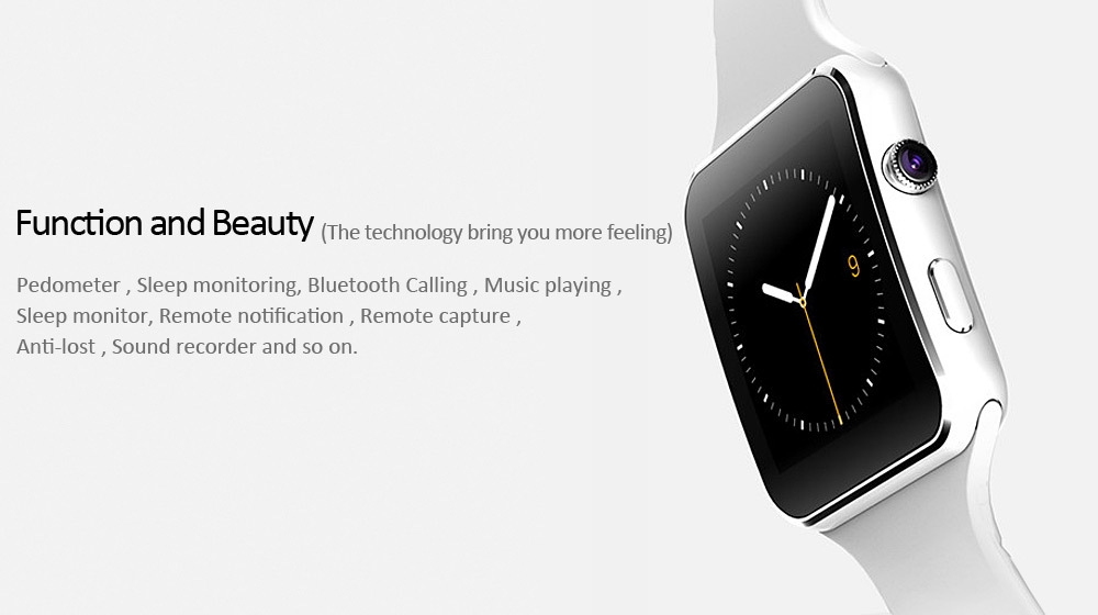 Cette montre facile d’utilisation vous permettra de recevoir vos notifications d’applications, vos contacts et journaux d’appels seront totalement synchronisés ( Android et Iphone), vous pouurez recevoir et passer vos appels (Android et Iphone), envoyer vos SMS ( Android uniquement), prendre des photos grâce à son appareil photo de 0.3 MP ou bien enregistrer des vidéos. Vous pourrez également vous en servir comme d’un vrai téléphone grâce à son emplacement carte SIM et carte mémoire (jusqu’à 32 GO).
