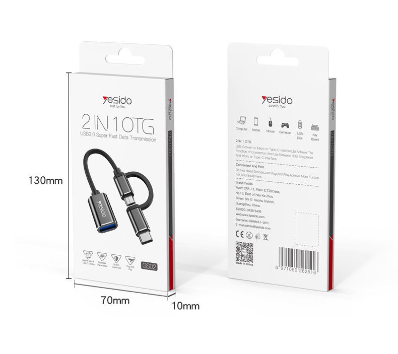 L’adaptateur OTG 2 en 1 Type-C / Micro vers USB (modèle GS02) est la solution idéale pour connecter facilement vos appareils mobiles à des périphériques USB tels que clés, claviers, souris ou disques externes.