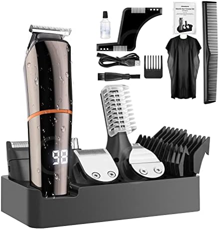 Le Prix YOHOOLYO Tondeuse à Cheveux Barbe Tondeuse Cheveux Hommes Professionnel Sans Fil Rechargeable Ecran LCD avec 6 Têtes de Lame et 6 Sabots pour Enfants Adultes Personnes Âgées Salon