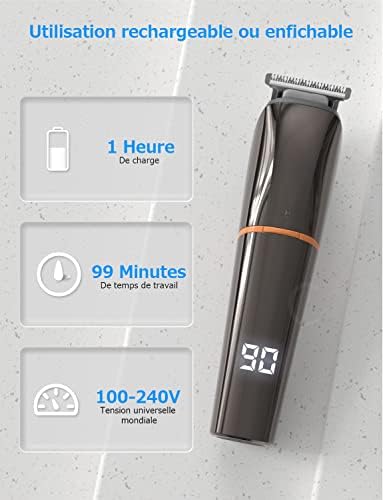 Fiche Technique YOHOOLYO Tondeuse à Cheveux Barbe Tondeuse Cheveux Hommes Professionnel Sans Fil Rechargeable Ecran LCD avec 6 Têtes de Lame et 6 Sabots pour Enfants Adultes Personnes Âgées Salon