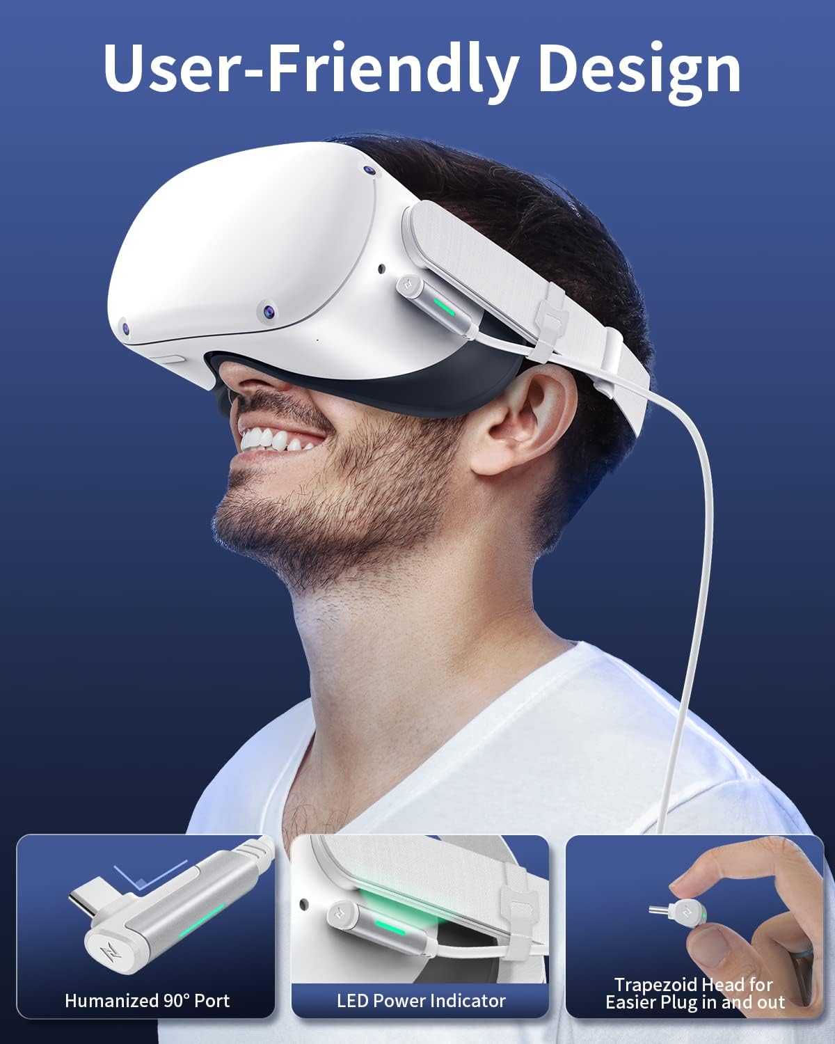 Compatible avec les accessoires Quest 3 : câble de liaison ZYBER de 4,9 m avec une performance rapide et stable tout en connectant Oculus Quest 2 au PC de jeu, offrant une meilleure expérience de jeu VR lorsque vous jouez à toutes les applications Rift et à des jeux VR Steam
