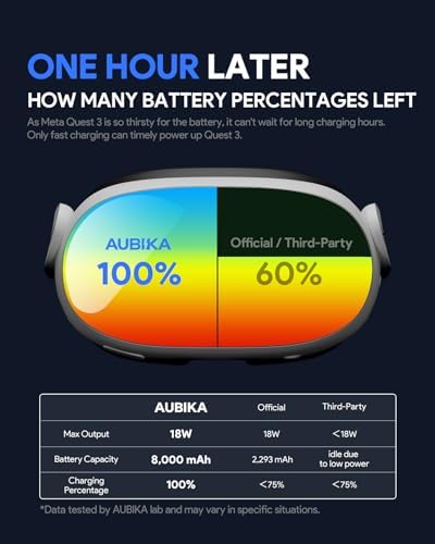 Avis sur Aubika Fast Charging Head Strap for Meta Quest 3 with Built-in 8000 mAh Battery Pack, Elite Strap Replacement, Foldable and Adjustable Accessories