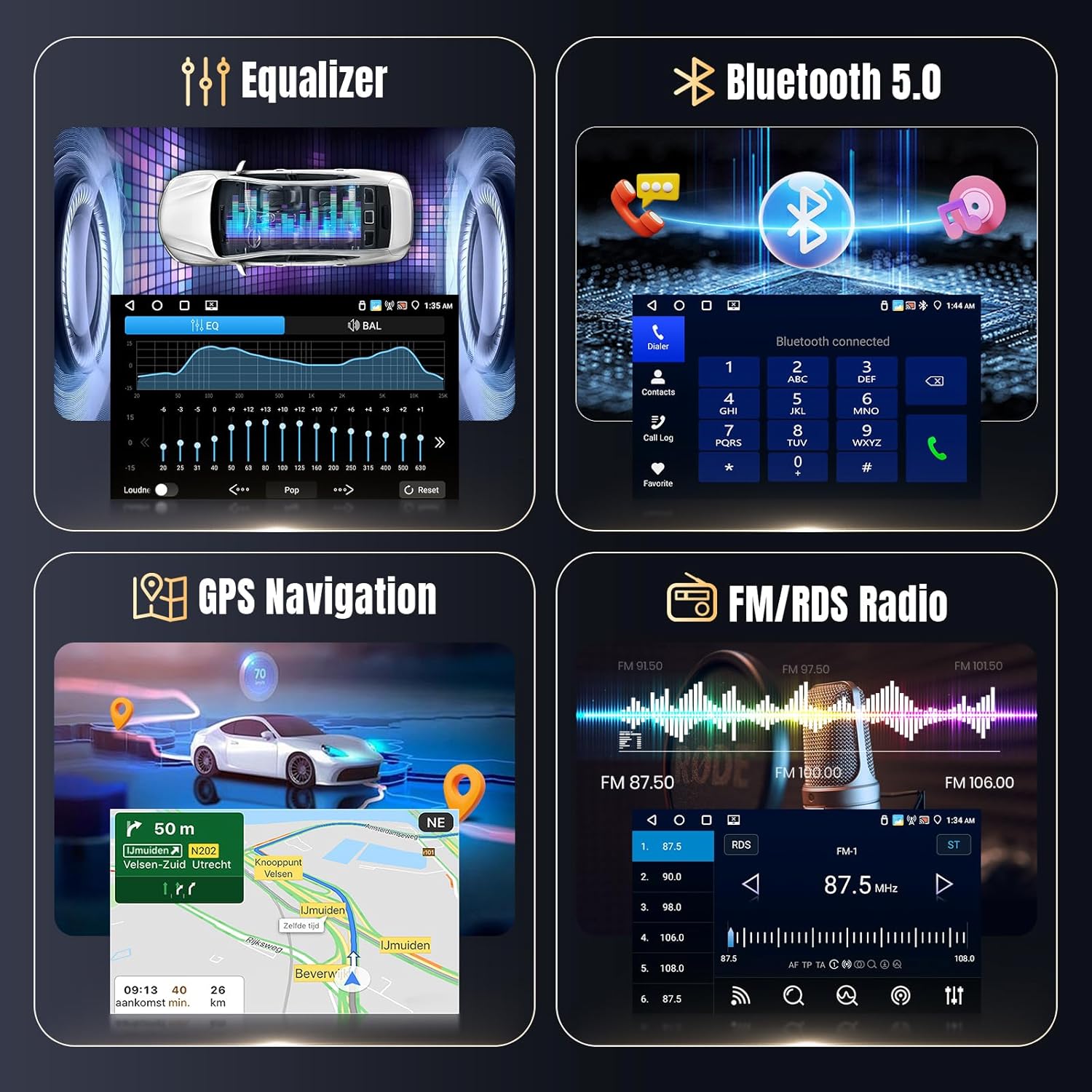 [Crystal Clear Screen & Outstanding Audio]: Enjoy a stunning 1280x720P IPS touch screen with vivid images and smooth touch control. Customize your sound with a 32-band EQ for a premium audio experience in your vehicle.