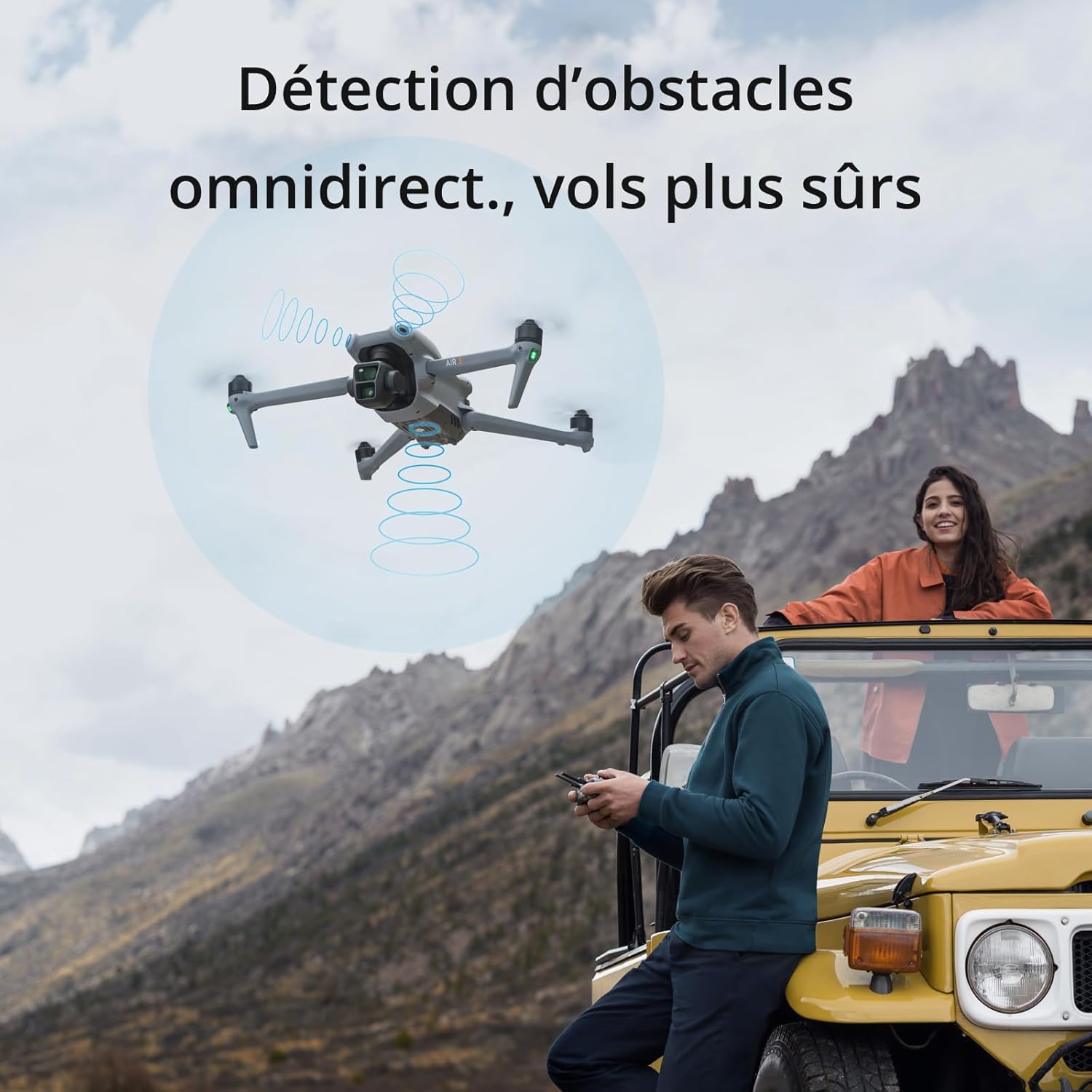 Fiche Technique DJI Bundle Air 3 Fly More avec RC 2 (radiocommande avec écran), drone avec télécaméra moy. et double caméra principale pour adultes 4K HDR, temps de vol max. 46 min, 48 MP, O4, deux batteries sup. au Maroc