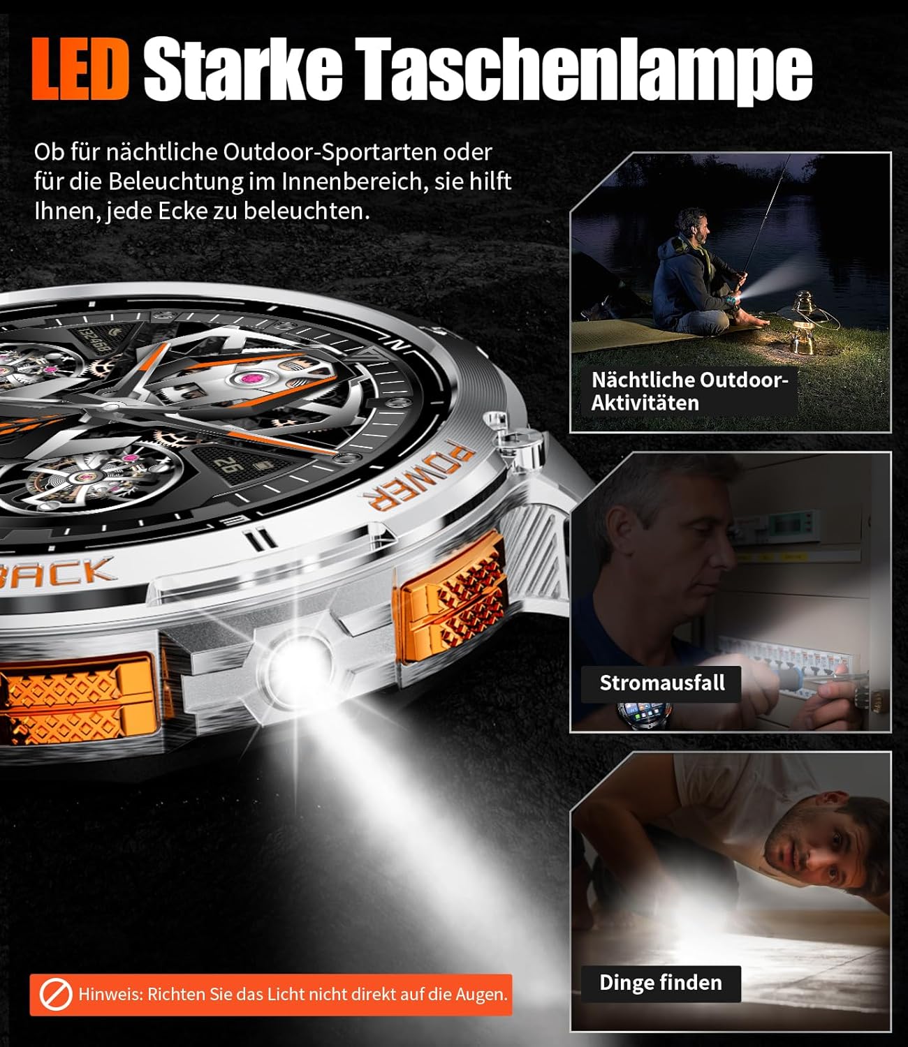 Accurate GPS and multi-system positioning: This men’s android smart watch offers precise GPS and supports military mono-frequency positioning. It is compatible with six satellite systems (GPS, GLONASS, Beidou, Galileo, NAVIC, QZSS) to ensure fast and accurate positioning at all times. With compass, altimeter and barometer, this waterproof military men’s smart watch provides real-time altitude, atmospheric pressure and location data to increase your safety during outdoor activities.