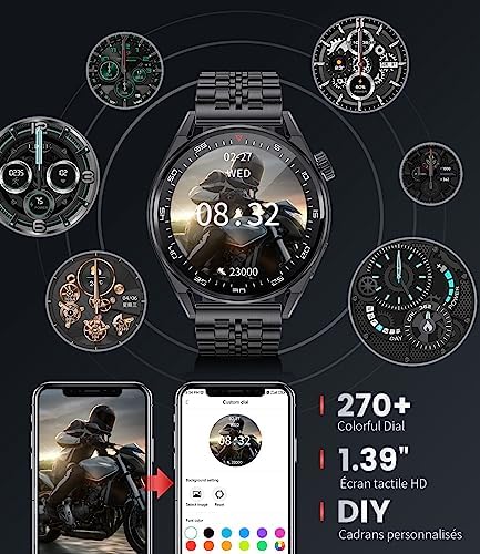 【Écran tactile HD de 1,39” et plus de 100 Cadrans Personnalisés】. L’écran tactile HD 1,39” permet non seulement un contrôle fluide, mais aussi une vision claire dans tous les environnements grâce à sa résolution 360*360 et à sa luminosité réglable. 100+ cadrans sont interchangeables et vous pouvez personnaliser les cadrans avec vos photos pour montrer votre personnalité et rendre votre vie plus intéressante.